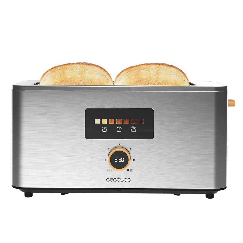 REACONDICIONADO Seminuevo Bueno Tostadora - Cecotec Touch&Toast Extra Double, 1500 W, 2 ranuras, 4 rebanadas, 7 niveles, Pantalla táctil, Inox