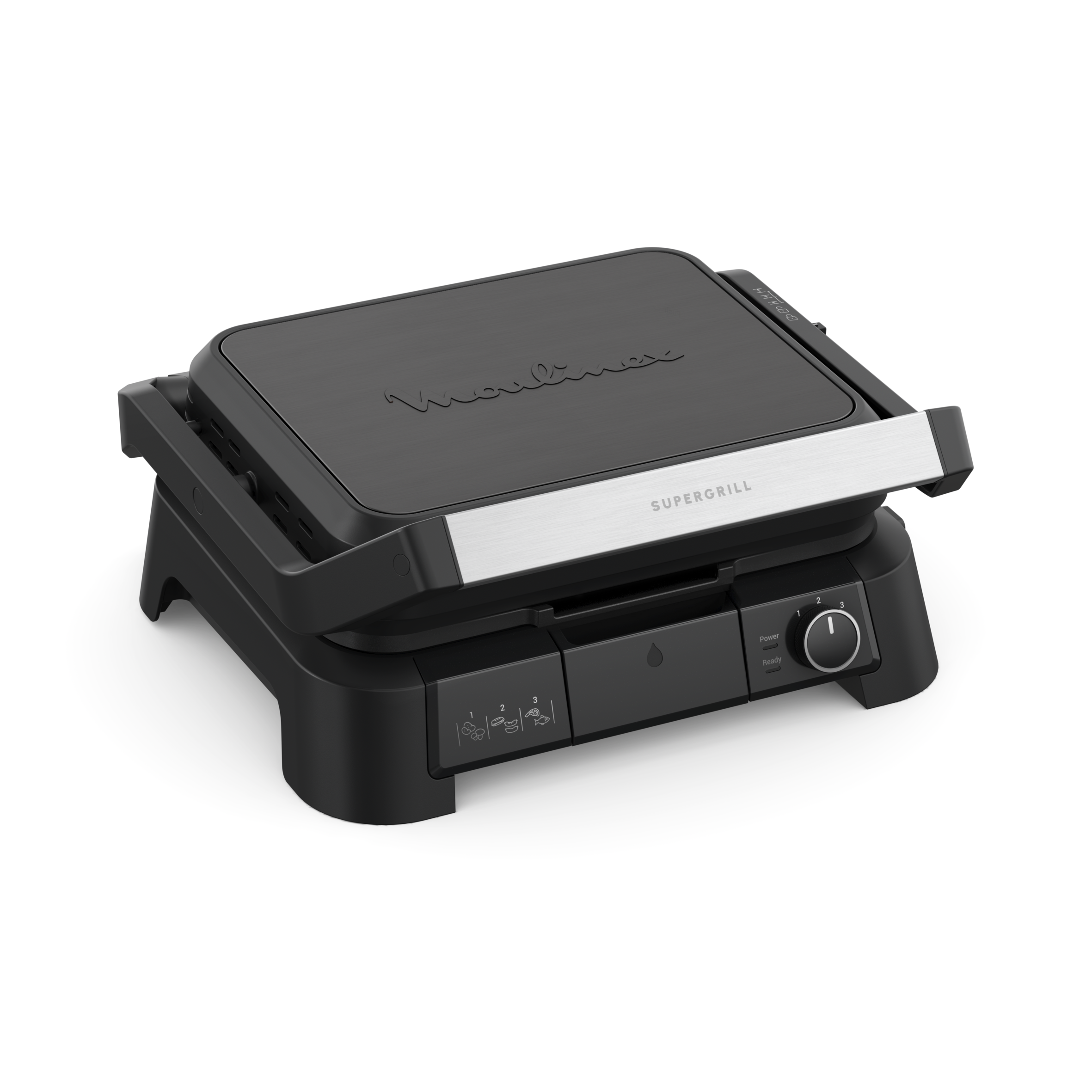Grill - Moulinex Supergrill 3 en 1 GI5108, 2000W, 3 opciones de altura, placas extraíbles, 3 temperaturas, Apertura 180º, Inox