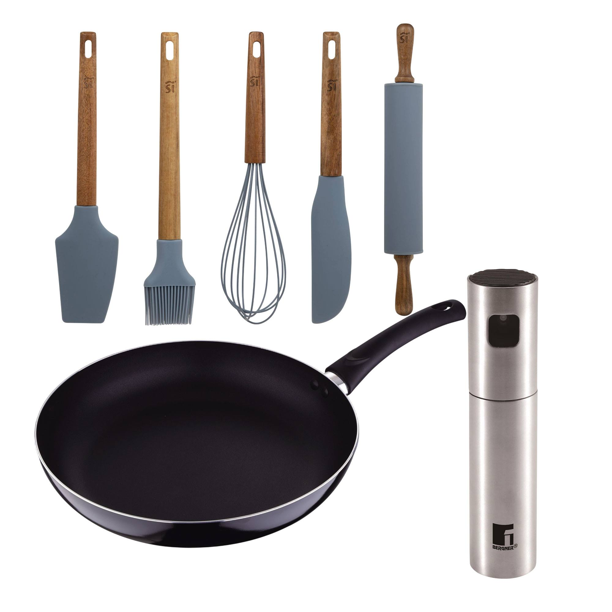 1 Sartén + 1 Pulverizador + 5 Utensilios de cocina