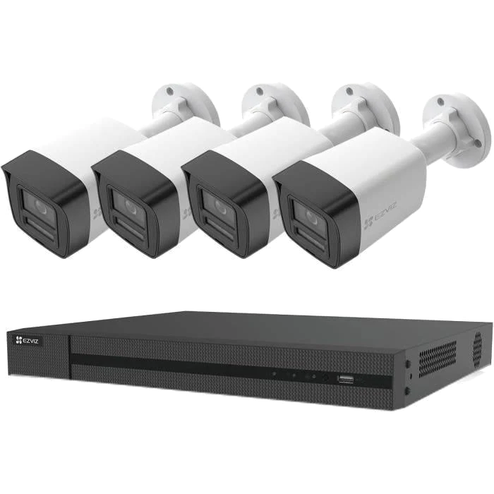 Cámara de vigilancia IP - Ezviz X5K+H3K, 4K, Función de visión nocturna, IP67, Defensa activa con sirena y luz estroboscópica, Blanco/Negro