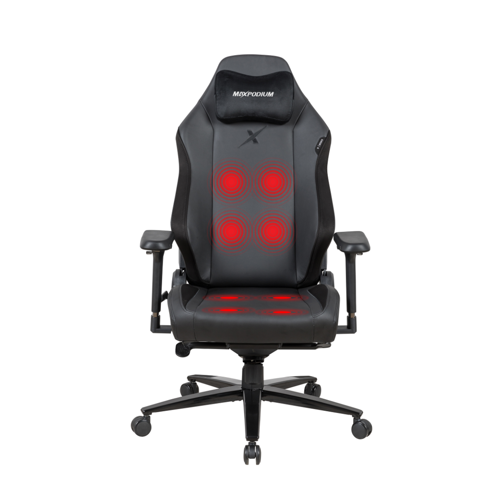 Silla gaming - MAXPODIUM Premium Heavy SMI, reposabrazos 4D (ajustable en altura, anchura y profundidad, también se puede girar), hasta 170 kg, Negra