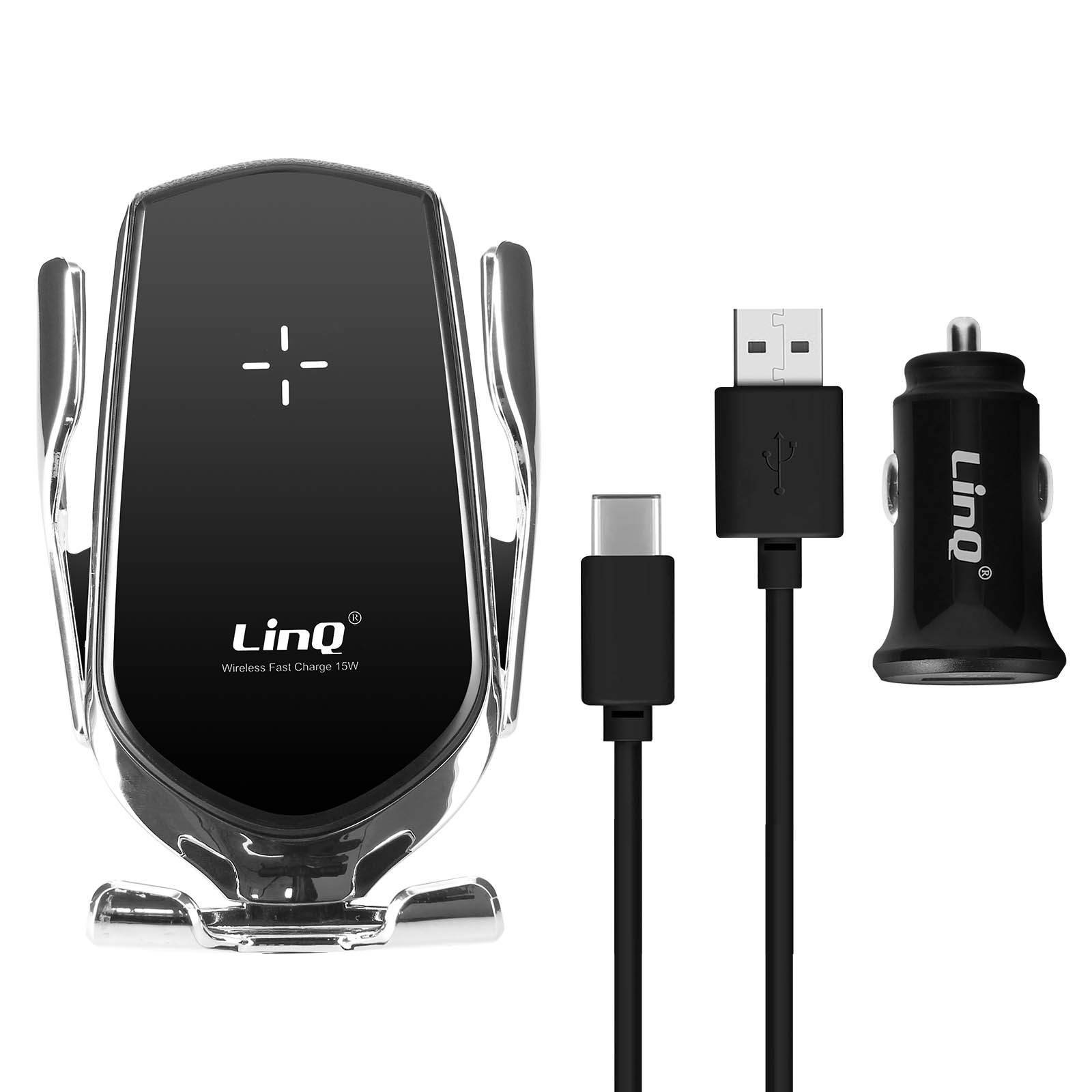 1x Soporte Coche con carga QI, 1x Cable USB, 1x Instrucciones de uso