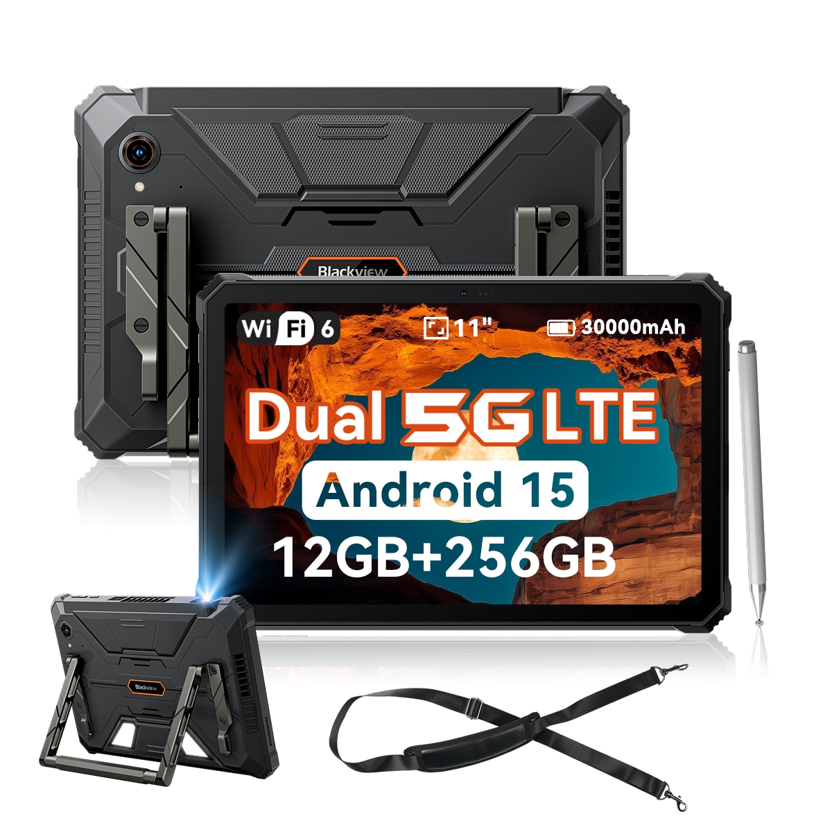 BLACKVIEW Active 12 PRO 5G Con Correa Para Hombro, 256 GB, Negro, 11 " Full-HD+, 12 GB RAM, MediaTek Dimensity 7300 (Ocho núcleos), Tablet Android