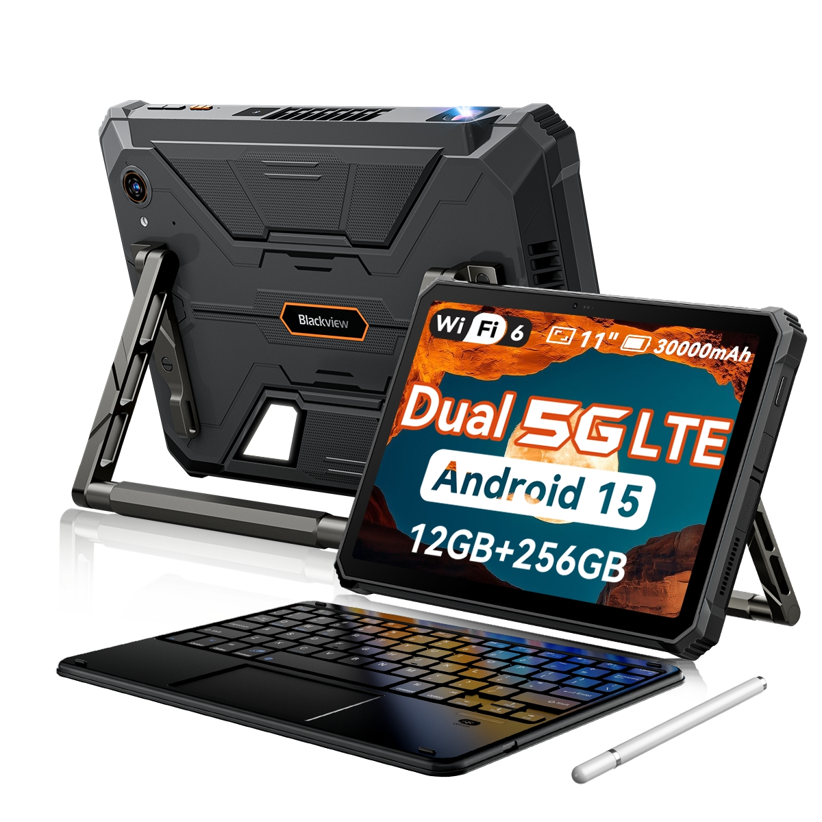 BLACKVIEW Active 12 PRO 5G Con Teclado (Inglés QWERTY), 256 GB, Negro, 11 " Full-HD+, 12 GB RAM, MediaTek Dimensity 7300 (Ocho núcleos), Tablet Android