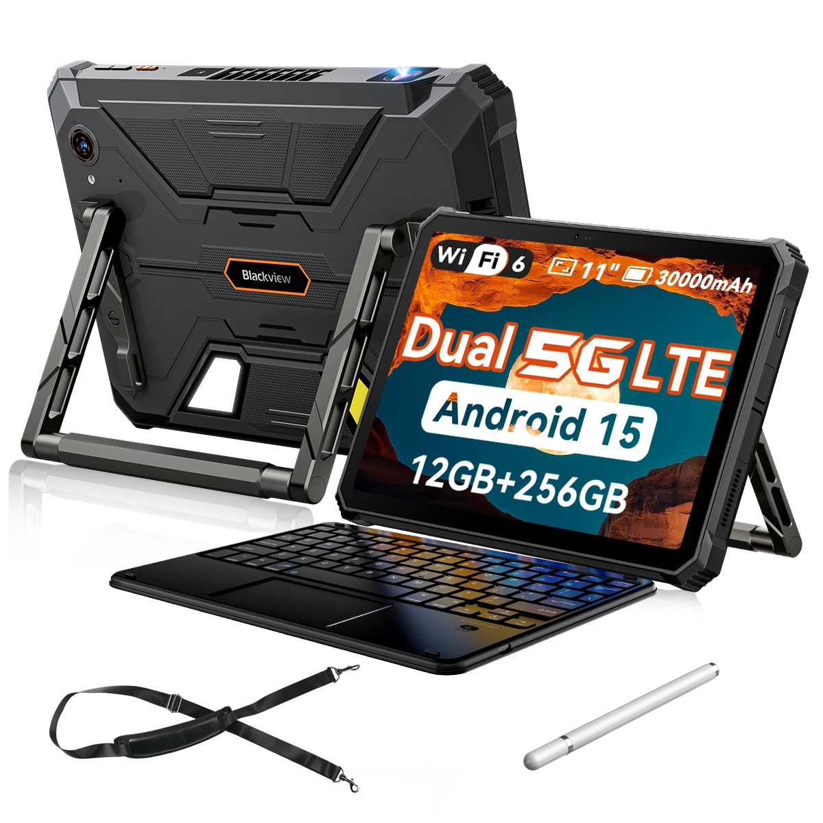 BLACKVIEW Active 12 PRO 5G con teclado y correa, 256 GB, Negro, 11 " Full-HD+, 12 GB RAM, MediaTek Dimensity 7300 (Ocho núcleos), Tablet Android