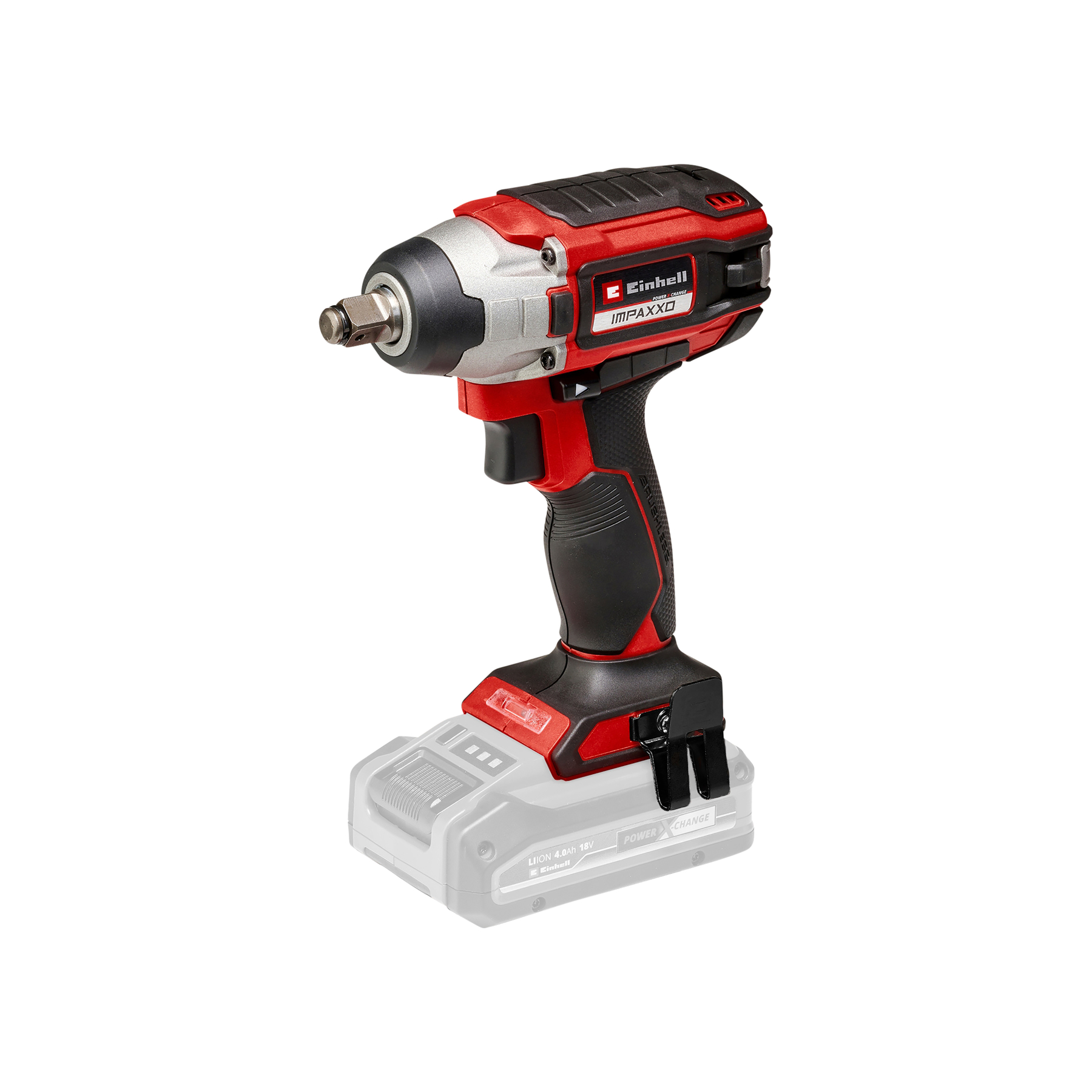 1x destornillador de impacto IMPAXXO 18/230, 1x adaptador de bit, 1x clip para cinturón