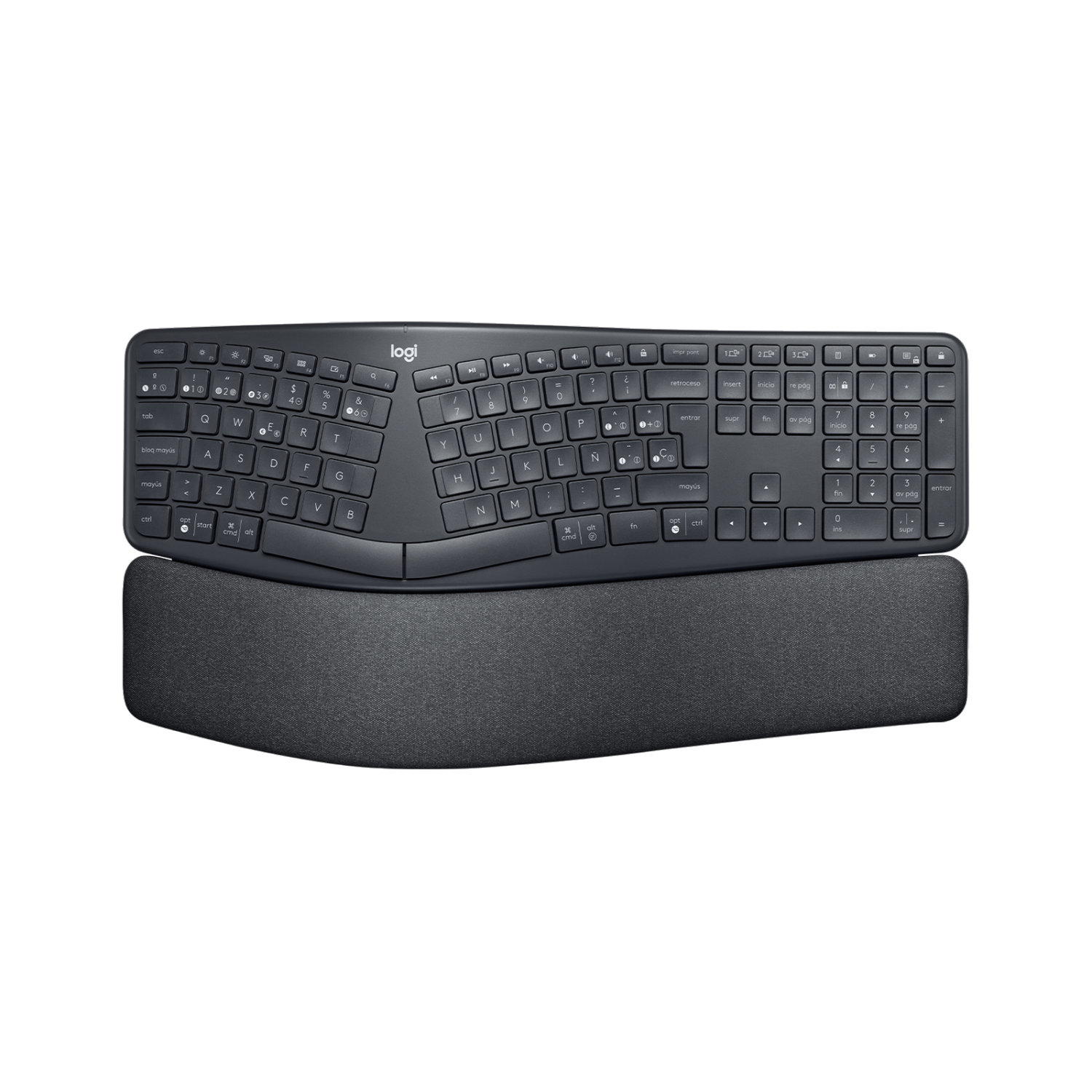 Teclado inalámbrico - Logitech ERGO K860, Bluetooth, Reposamanos, Teclas personalizables, Teclado numérico, Patas ajustables, Negro
