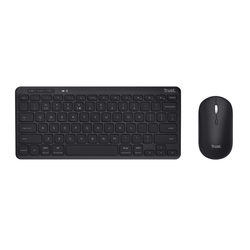 Pack teclado + ratón - Trust Lyra, 6 Meses Autonomía, USB, Compacto, Inalámbrico, Negro