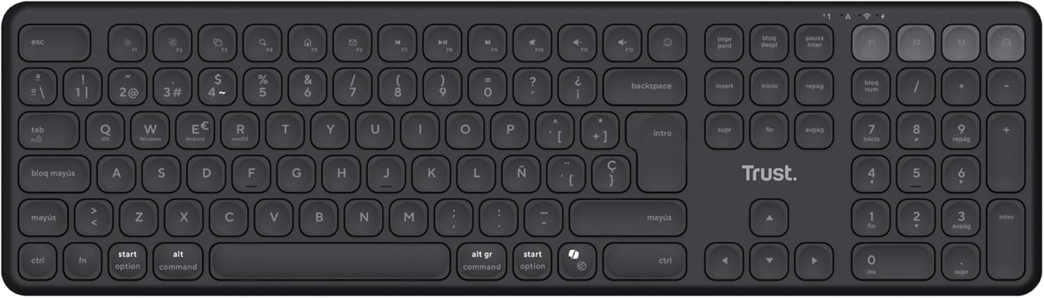 Teclado inalámbrico - Trust Vaiya, Inalámbrico, Multidispositivo, Tamaño completo, Negro