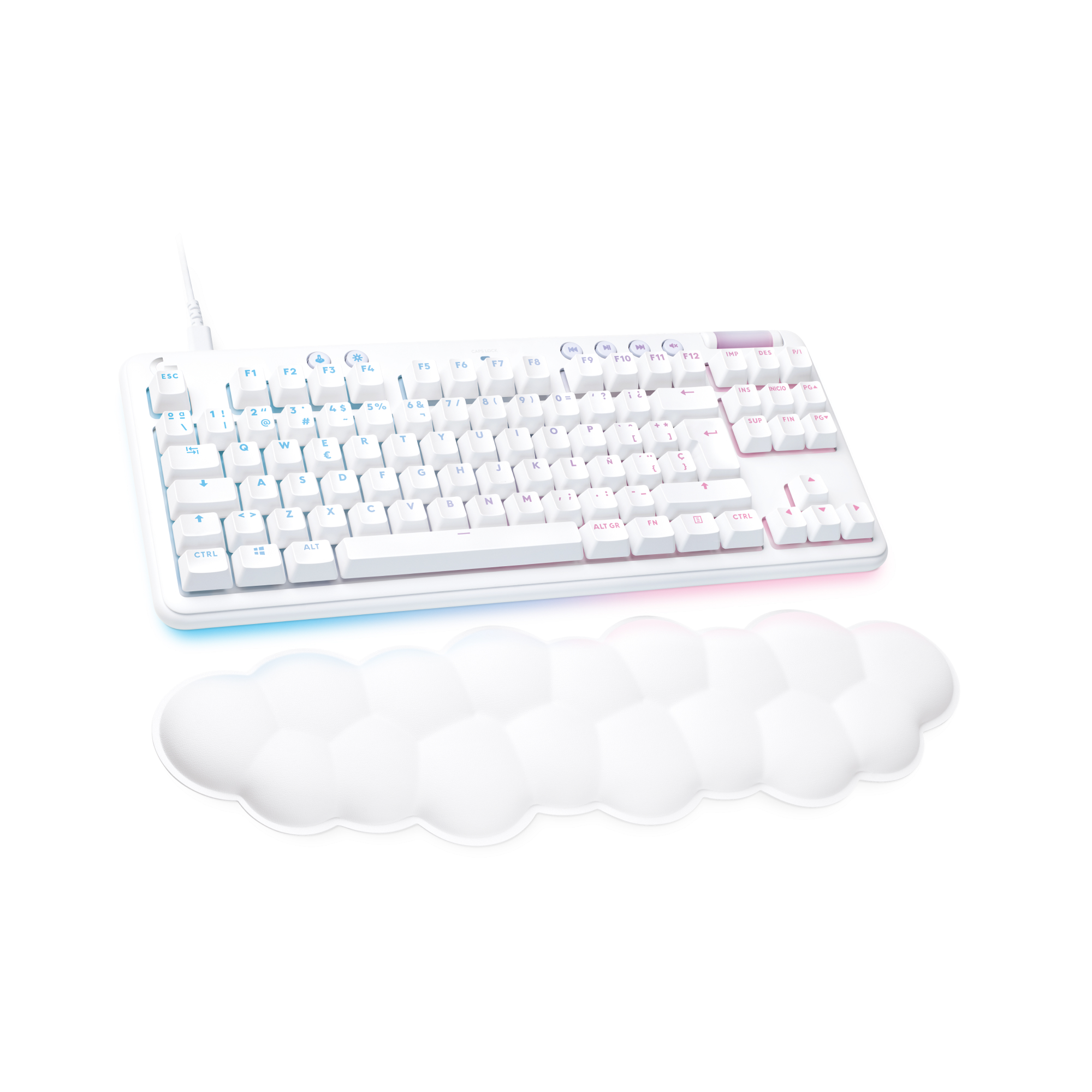 Teclado gaming - Logitech G G713 Tactile Aurora Collection, Táctil, Reposamanos, USB, Retroiluminación, Controles multimedia, RGB Lightsync, Blanco