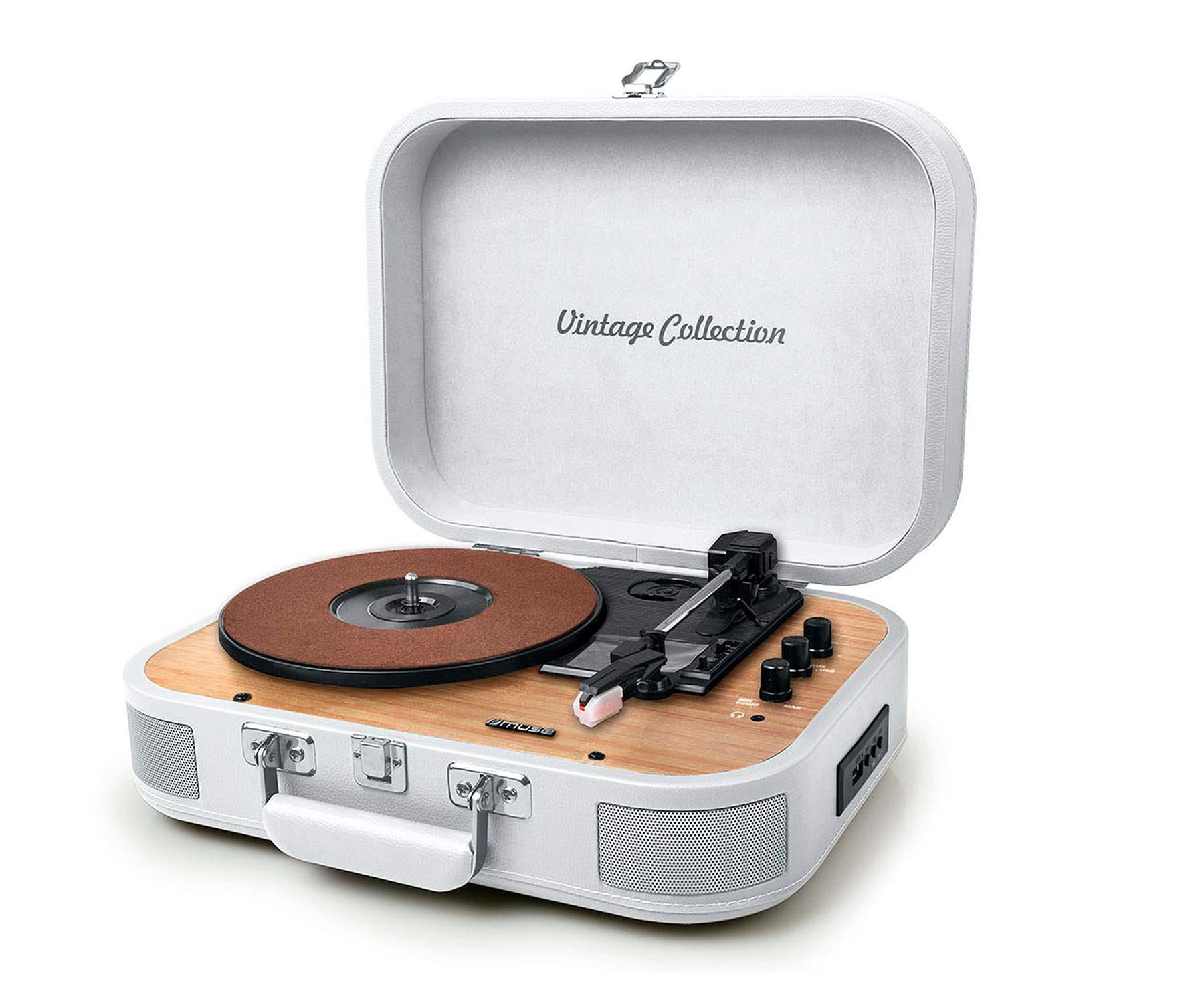 Tocadiscos - MT-201 MUSE, Bluetooth, USB, RCA y jack 3.5mm, 33 / 45 / 78 rpm, Blanco