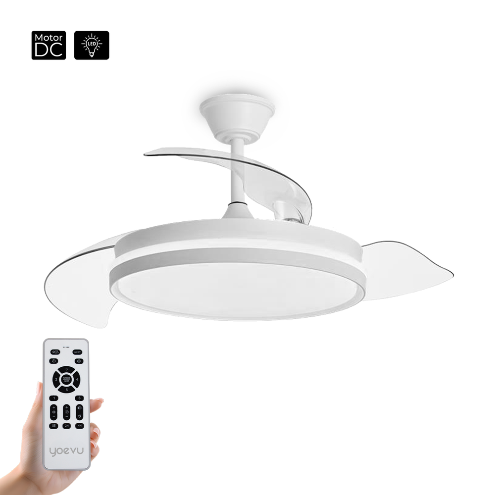 Ventilador de techo con luz - YOEVU EOS ONE, 6 velocidades, Blanco