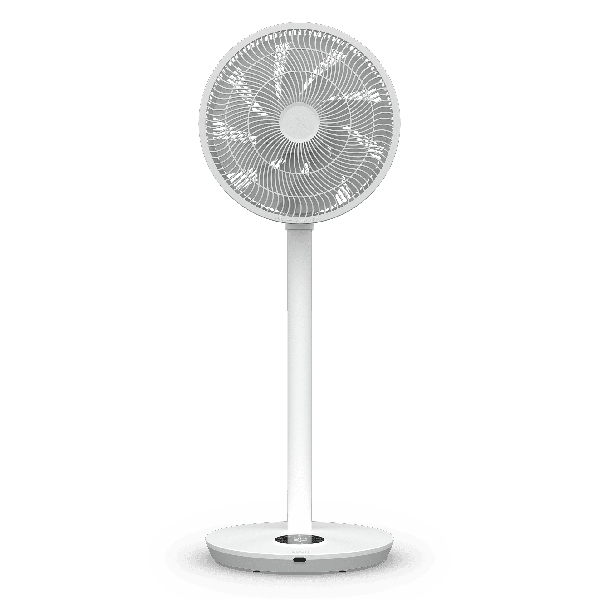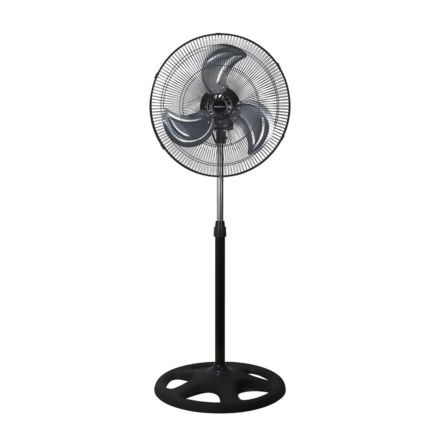 Ventilador de pie con motor silencioso, altura regulable, base estable, oscilación de 120º, construcción resistente, sin vibración, fácil de montar, aspas balanceadas.