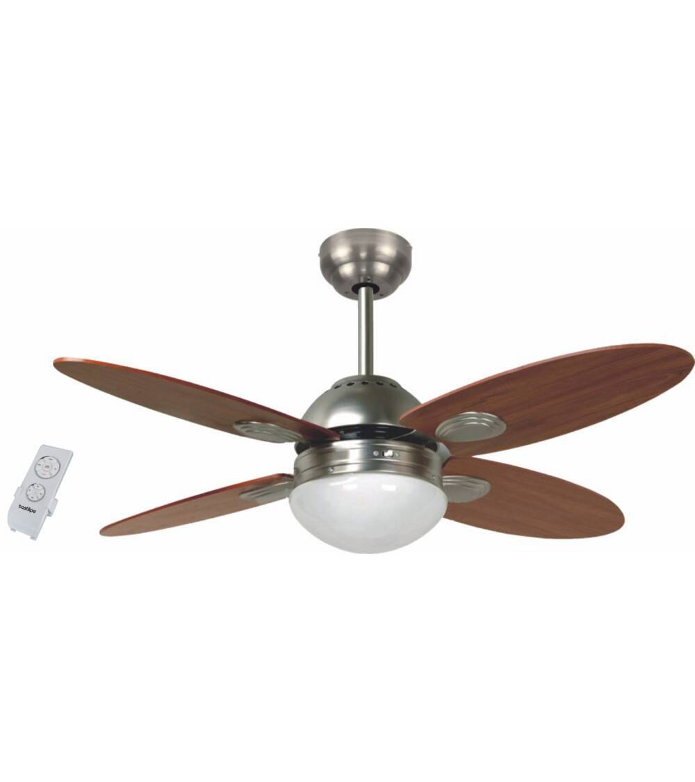 Ventilador de techo - BASTILIPO Bastilipo - Bastilipo Bermeo Níquel Ventilador Techo con Mando A Distancia E27, 60 W, Blanco, 105 x, 60 W, 3 velocidades, Grey