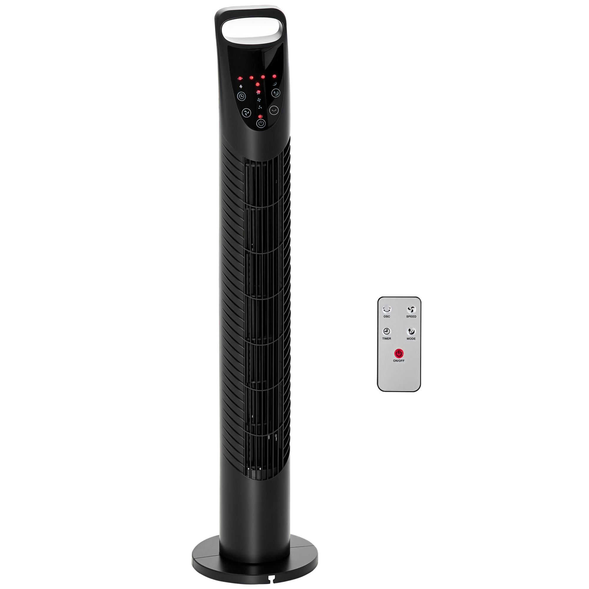 HOMCOM Ventilador de Torre Ventilador Vertical 40W con Mando a Distancia 3 Velocidades Temporizador 7,5h Oscilante 70° Ø18x78,5 cm Negro
