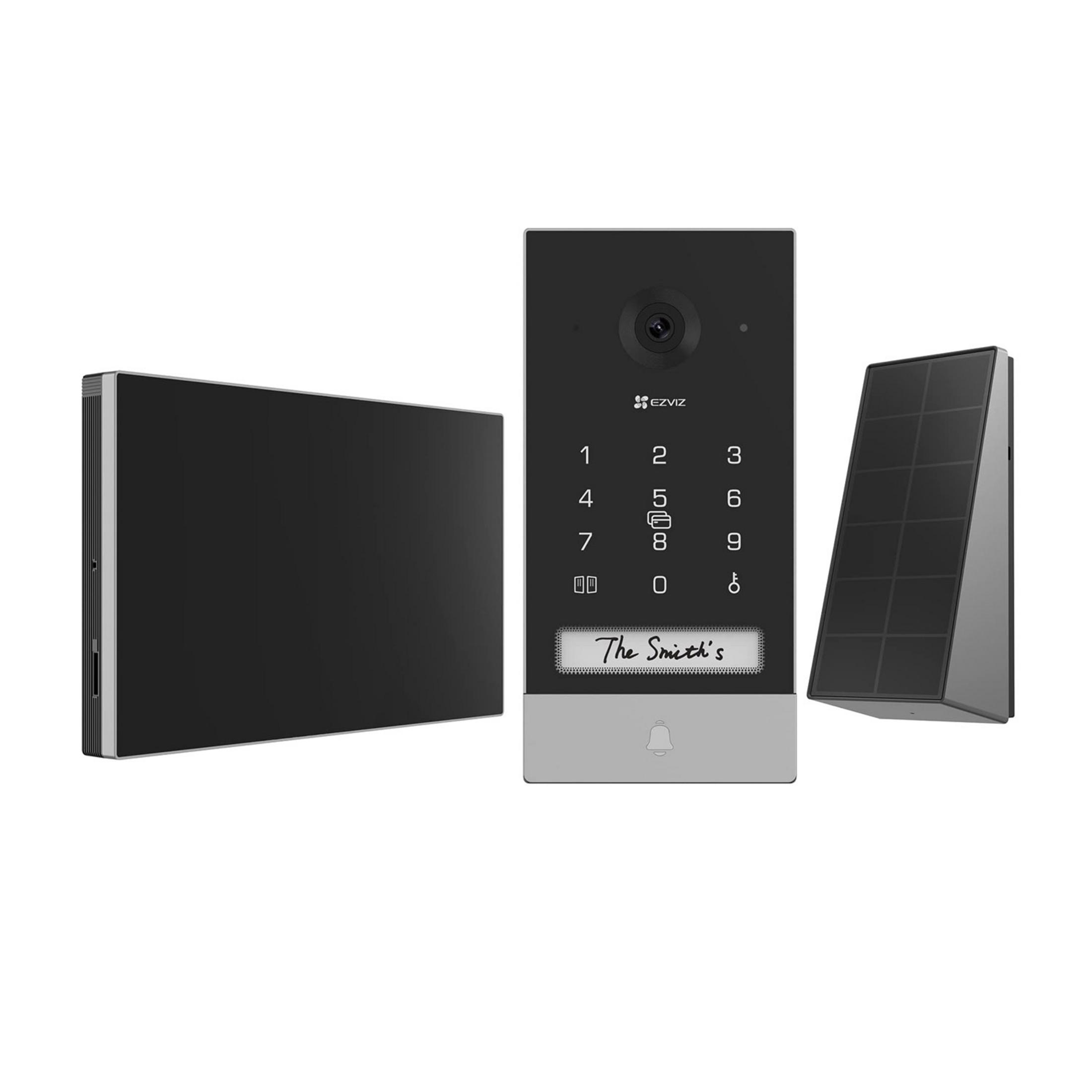 1x Monitor, 1x Soporte de pared para monitor, 1x Adaptador de corriente para monitor, 1x Panel de intercomunicación (timbre) con escudo resistente a la intemperie, 1x Plantilla de perforación para monitor, 1x Plantilla de perforación para placa de intercomunicación, 1x Destornillador, 3x Tarjeta de presentación, 3x Insignias, 2x Kit de tornillos , 1x Alfiler, Cables y conectores de cables, 1x Batería para Placa de Intercomunicación, 1x Cable USB para batería, 1x Cable conector Jack de fuente de alimentación, 1x Panel solar, 2x Información regulatoria, Guía de inicio rápido