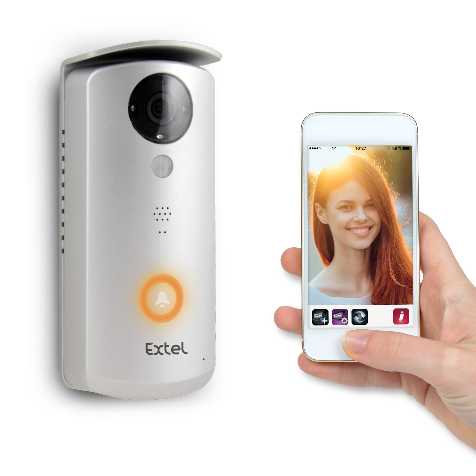 - 1 monitor - 1 placa de calle - 1 adaptador de corriente enchufable - 1 visera antiplluvia
