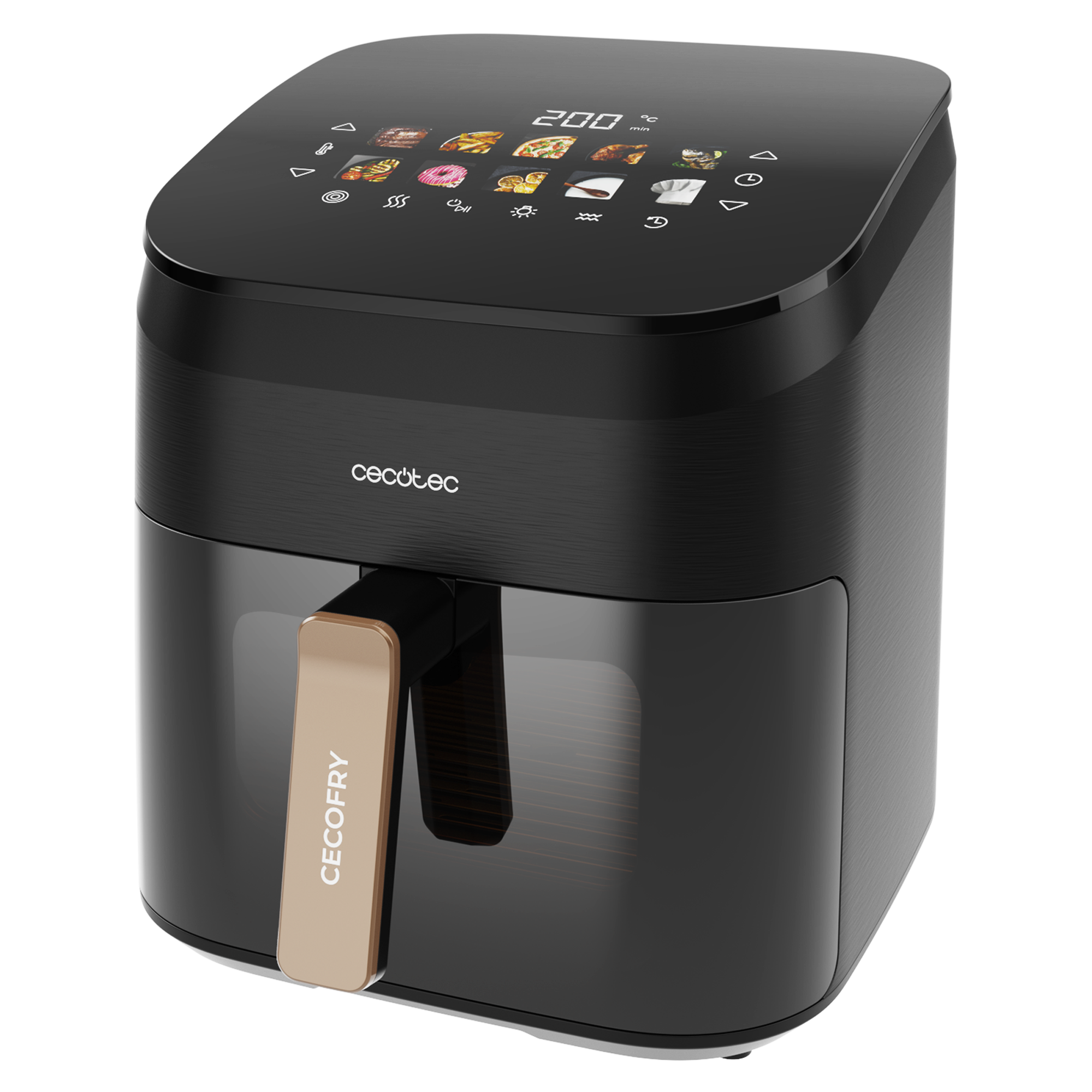 Freidora de aire - Cecotec Cecofry Bombastik 6000, 1700 W, 6 L, 80-200 ºC, 12 modos, Temporizador, Negro