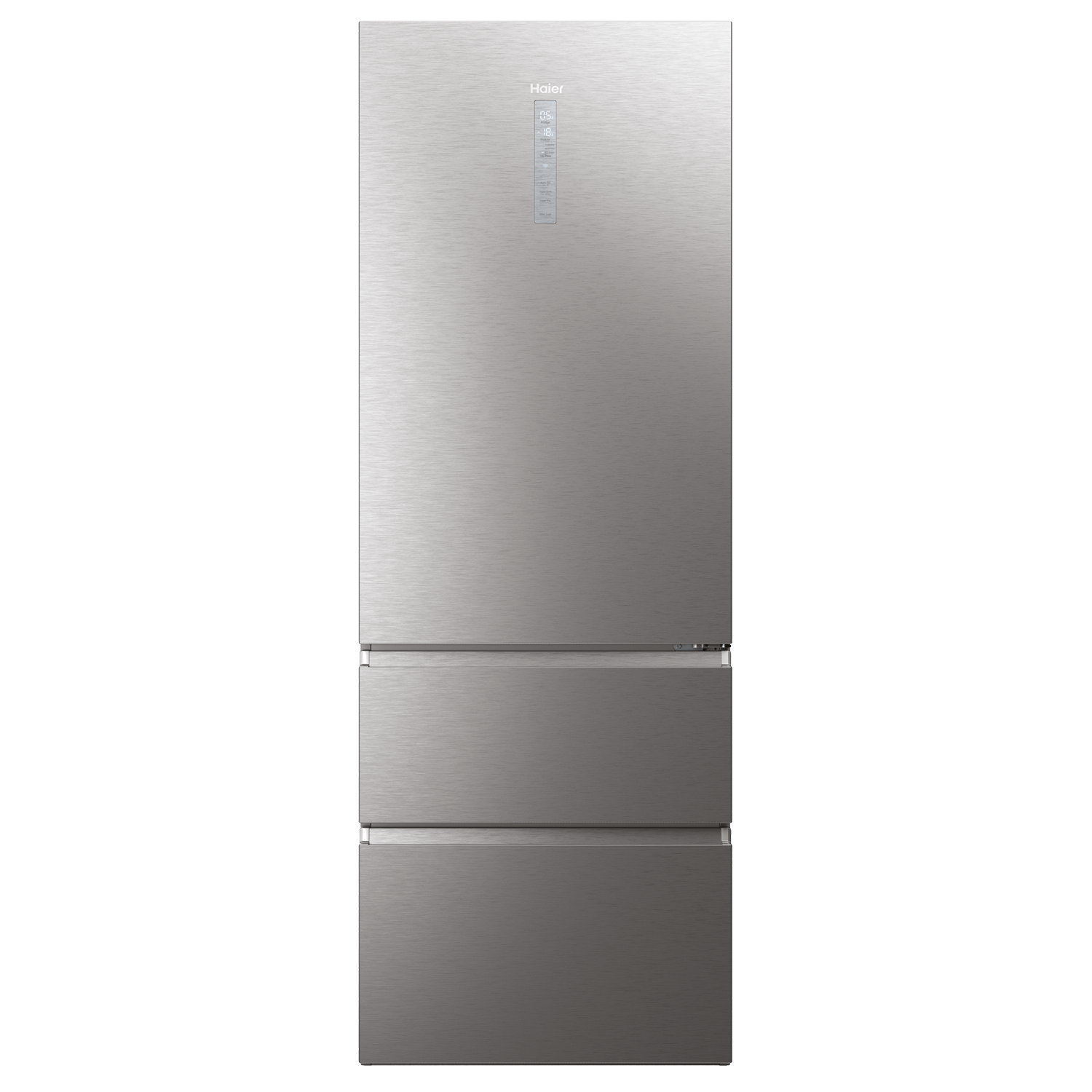 Frigorífico combi - Haier HTW7720CNMM, No Frost, 200.6 cm Altura, 486L, 3 Puertas, WiFi+Bluetooth, Inox Platino