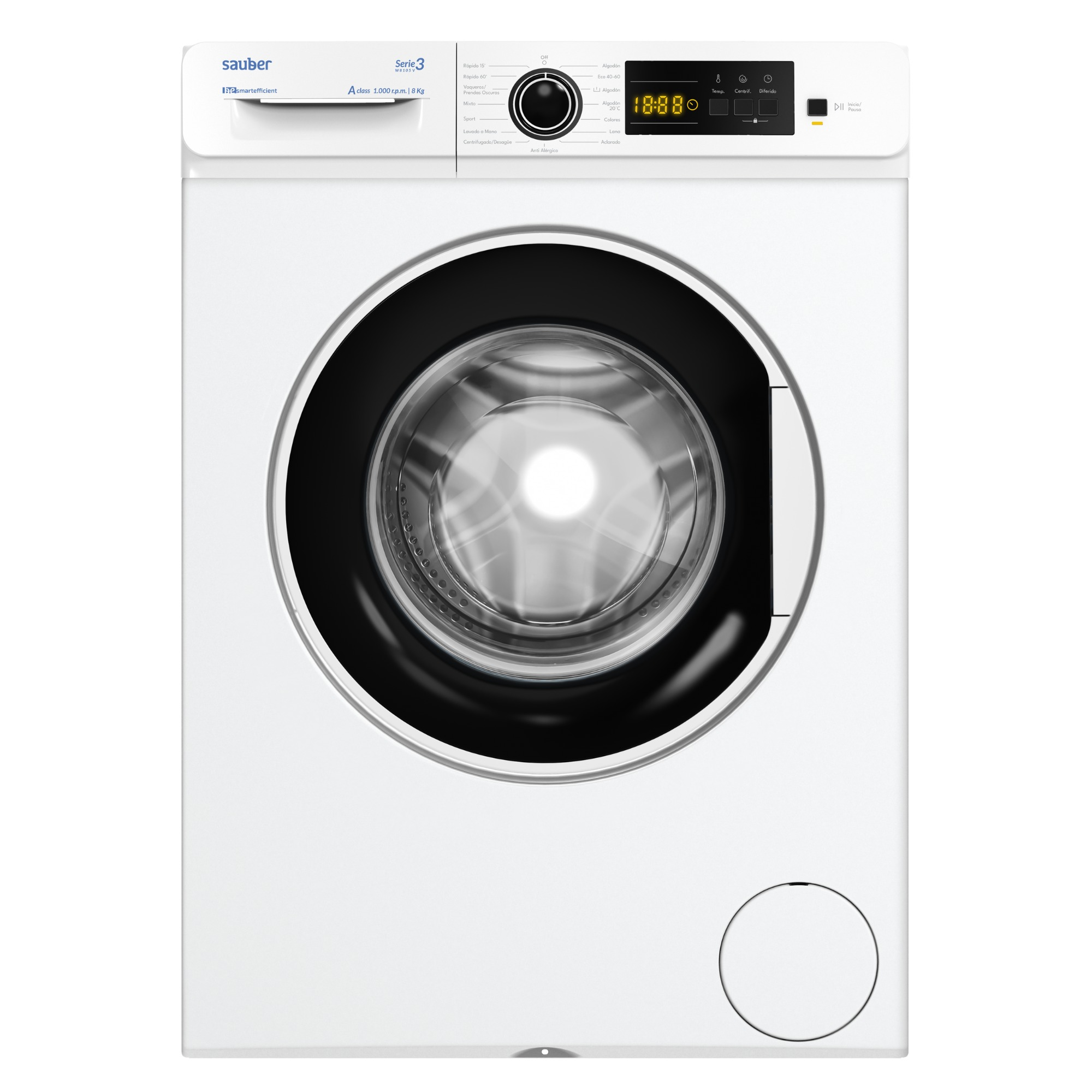 Lavadora carga frontal - SAUBER SERIE 3-W6105V, 6 kg, 1000 rpm, 15 programas, Blanco