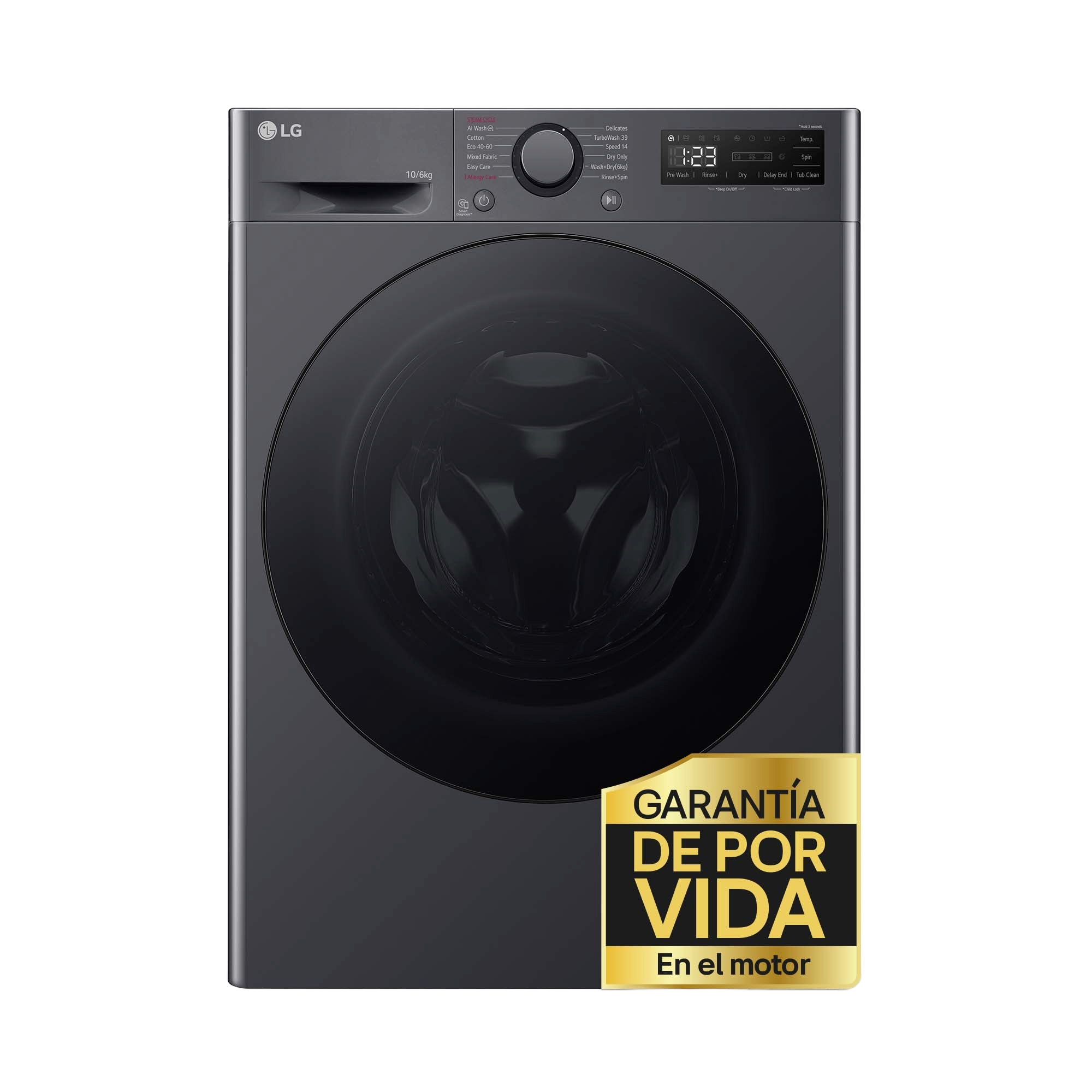 Lavadora secadora - LG F4DR6010AGM, Serie 600, 10 kg / 6 kg, 1400 rpm, 12 programas, AI Direct Drive™, TurboWash™360˚, Inox grafito antihuellas