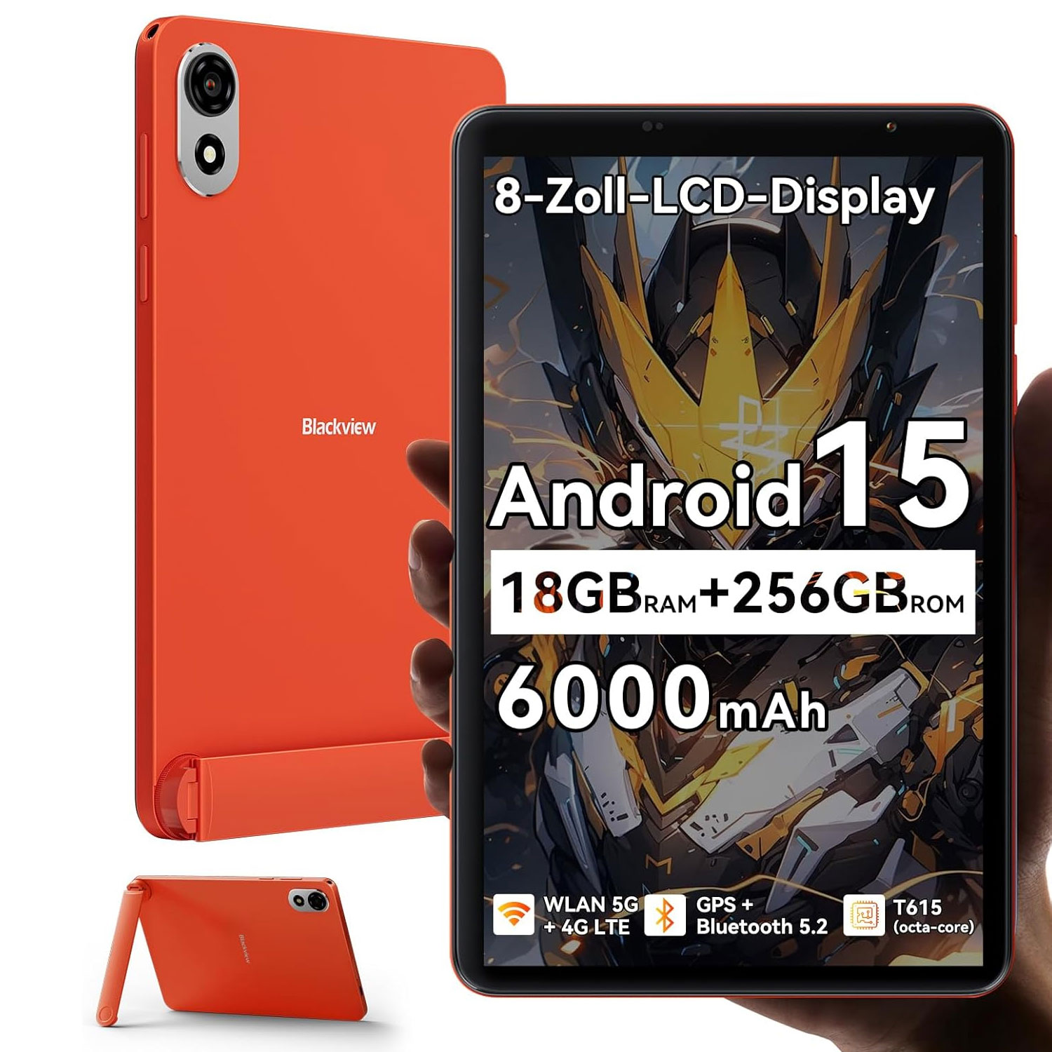 BLACKVIEW ZENO 1(4GB+64GB), 64 GB, Naranja, 8 " HD, 4 GB RAM, Unisoc T615(Octa-core), Tablet Android